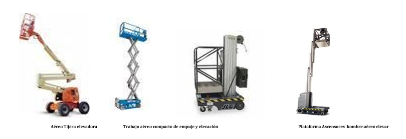 En el lugar de trabajo suele ser necesario realizar trabajos elevados. El acceso seguro a esta zona elevada se puede proporcionar mediante una variedad de elevadores aéreos. Algunos tipos de plataformas aéreas son: JLG, Snorkel, plataformas de tijera, plataformas con brazo articulado, etc.