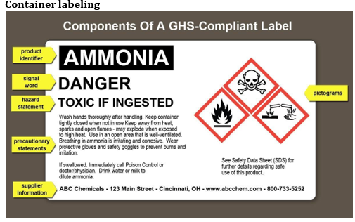 • The foreman will verify that all containers received for use will be clearly labeled as to the contents, note the appropriate hazard warning, and list the name and address of the manufacturer.