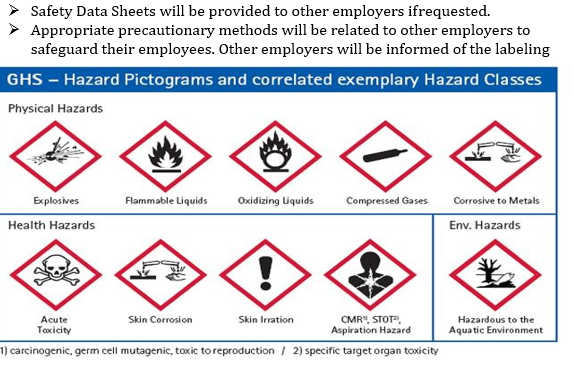 The following procedures will be used to inform other employers who have employees who may be exposed to hazardous chemicals use by employees of this company: