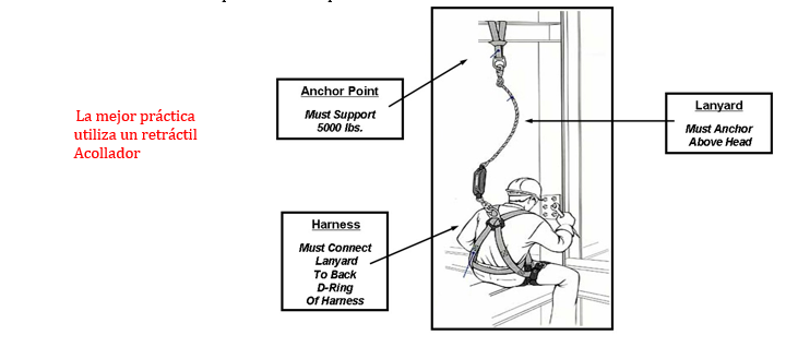 - Los puntos de anclaje deben estar en un punto por encima de los trabajadores. espalda.