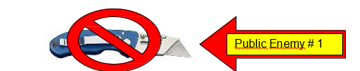 Las herramientas manuales se atribuyen a muchos tipos de lesiones como laceraciones, dedos rotos, etc. Los cortadores de cajas son una herramienta diseñada para abrir cajas, no para pelar cables. Utilice la herramienta adecuada para el ¡trabajo!