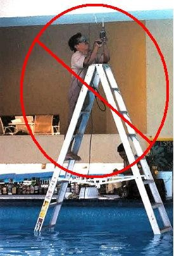 - Evite empujar o tirar hacia un lado de la escalera. NO camine ni cambie de escalera mientras esté en la escalera.