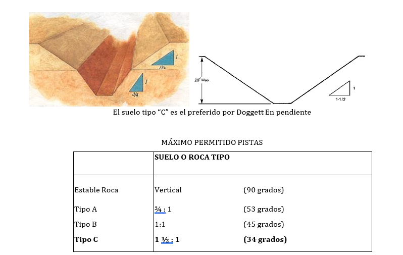 Suelo cohesivo con una resistencia a la compresión ilimitada de 0,5 toneladas por pie cuadrado o menos. Suelo sumergido o suelo del cual el agua se filtra libremente Suelos granulares que incluyen grava, arena y margas arena